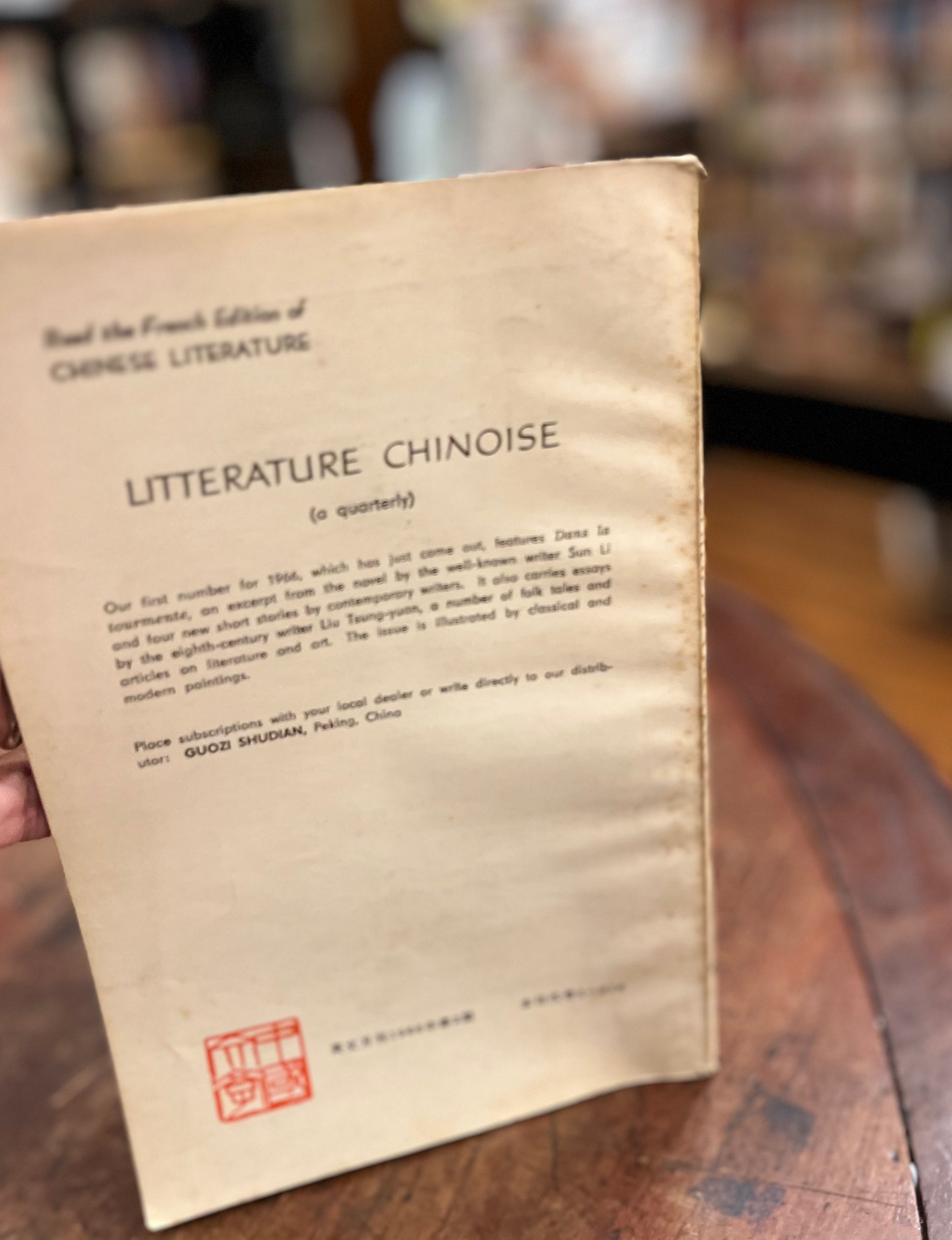 Compendio de literatura china mensual. Editor: Mao Tun. Asistente director Yeh Chun-Chien. En inglés.